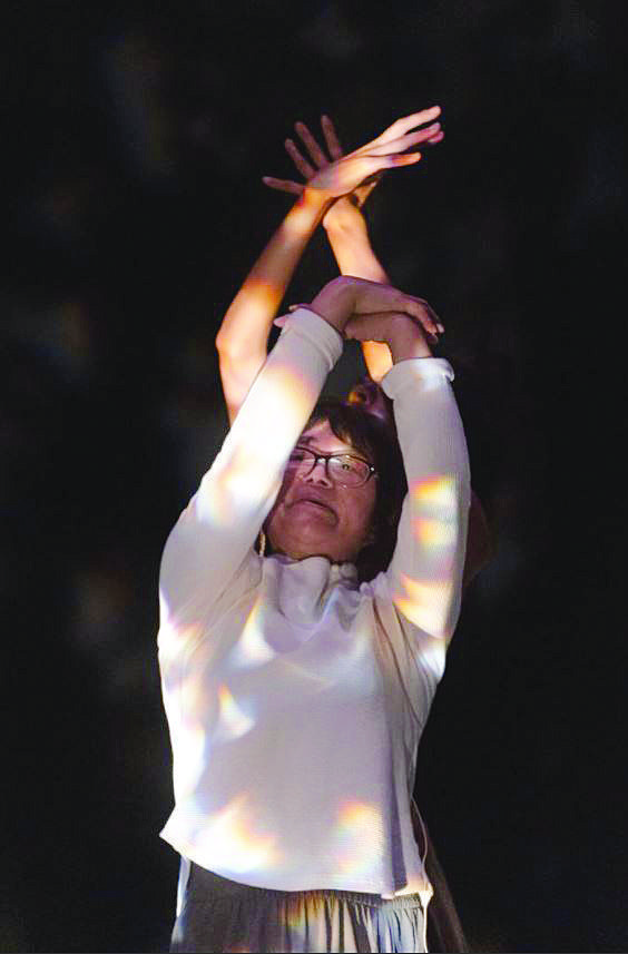 法魯克和余秀華合作詩歌舞蹈劇場作品《萬噸月色》,試圖把詩里的“陰影”意象轉(zhuǎn)化成某種新鮮的舞臺象征——讓詩人在光與暗交錯的空間里跳舞,在不同尺寸的“陰影”下舞蹈,表達不同生命階段對“陰影”的感受。(均受訪者供圖)