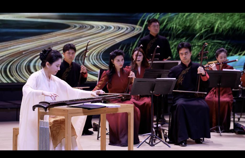 音樂會上,復(fù)刻春秋古制的古琴與珍稀老琴同臺亮相。古琴演奏家路寧攜手中央民族樂團演奏家們,以《源》《神游》《清泠》《醉枕石》《云水吟》等8首全新編創(chuàng)作品為紐帶,讓古琴清微淡遠的音色與大運河“流動史詩”的氣質(zhì)深度相融,完成跨越時空的對話。