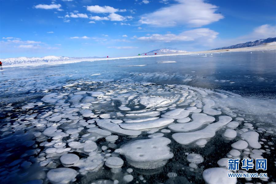2月20日在新疆博爾塔拉蒙古自治州境內(nèi)的賽里木湖拍攝的湖面結(jié)冰后形成的冰花奇觀。進(jìn)入2月份后,新疆海拔最高的湖泊賽里木湖湖面全部結(jié)冰,在湖邊的一些小泉眼處,不停泛出的氣泡在冷空氣作用下,迅速凝結(jié),形成了如冰柱、螺旋紋等形式多樣的冰花奇觀,令人嘆為觀止。新華社發(fā)(沈志君 攝)