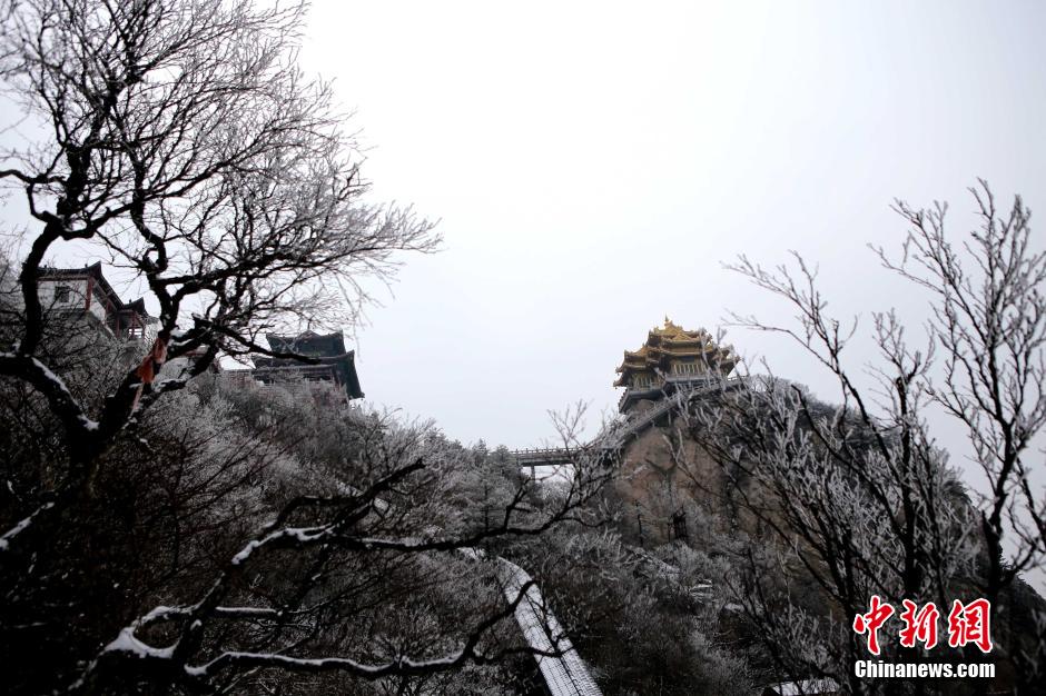 3月23日,河南洛陽(yáng)老君山遭遇“倒春寒”,海拔2000米的老君山三月飛起“桃花雪”,玉樹(shù)瓊枝、銀裝素裹,金頂廟宇和蒼松翠柏相襯,猶如一幅精致的水墨畫(huà)。 中新社記者 王中舉 攝