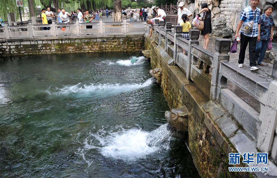 受近期雨水充沛的影響,以趵突泉為代表的濟(jì)南市區(qū)名泉紛紛復(fù)蘇,基本恢復(fù)了正常噴涌的景觀。 新華社記者 徐速繪 攝