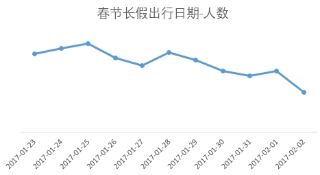 根據(jù)國(guó)務(wù)院發(fā)布的《2017年部分節(jié)假日安排的通知》,春節(jié)1月27日-2月2日放假。雖然正式放假要到27號(hào),但沒(méi)心情工作的上班族選擇早早“出逃”。據(jù)截至目前的攜程出游數(shù)據(jù),1月23日起出發(fā)人數(shù)就開(kāi)始明顯升高,到1月25日達(dá)到出行最高峰,甚至比1月27日假期第一天還高。