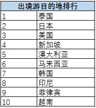 出境游熱門目的地榜單