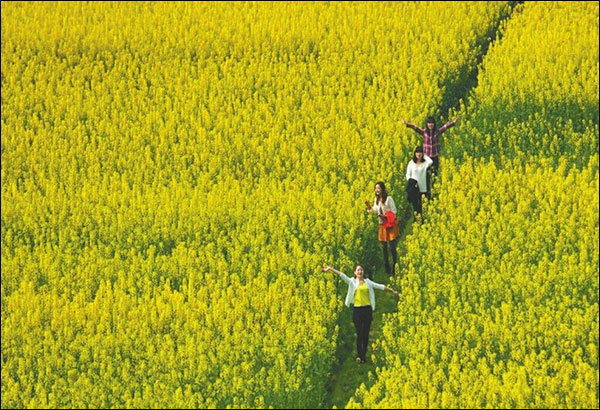 重慶路,這條“最美鄉(xiāng)村公路”也提前報(bào)春。道路兩側(cè)的金色油菜花海,惹得眾人置身其中,一邊拍照一邊追逐打鬧。此外,附近還隱藏有一處“桃花源”,也十分值得探尋。