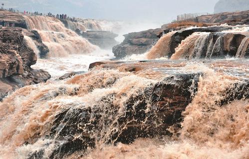 3月23日,游客在細(xì)雨中觀看吉縣黃河壺口瀑布桃花汛壯觀場(chǎng)面。今年春季氣溫快速回升,黃河上游內(nèi)蒙古段全線開河,吉縣壺口瀑布水量大增,主瀑與河岸水道形成壯美的瀑布群,眾多游客現(xiàn)場(chǎng)領(lǐng)略壺口春潮的磅礴氣勢(shì)。據(jù)悉,今年壺口瀑布桃花汛比往年提早了約一周的時(shí)間。