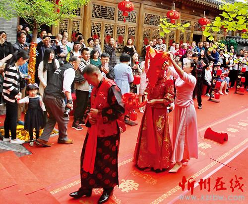 5月1日,不僅是國際勞動節(jié),很多新人也會選擇在這一天舉行婚禮。忻州市民潘先生和智女士就是其中的一對。這一天,他們在傳統(tǒng)中式婚禮儀式中邁入婚姻殿堂。古色古香的四合院,一排排大紅燈籠串著喜慶,一把把七彩陽傘溢著吉祥;紅彤彤的地毯鋪滿幸福,熱騰騰的油糕粘著美滿。一段紅絲綢,牽著新人的手,牽著一生一世的愛情,跨火盆馬鞍,拜過天地高堂,夫妻對拜,揭開紅蓋頭,點上紅喜燭,再喝一杯交杯酒……講究、喜慶的傳統(tǒng)中式婚禮環(huán)節(jié)讓兩位新人和到場賓客感受到了中國傳統(tǒng)文化的魅力。 傳統(tǒng)婚禮是中國文化精粹之一,婚禮習俗也源于中國幾千年的歷史文化積累,孝敬、祝福、吉祥更是成為中式婚禮上的主題,幾乎婚禮的每一項禮儀都滲透著中國人婚禮習俗的哲學思想。后來隨著時代發(fā)展,中式婚禮漸漸退出了人們的視線。很長一段時間無論在鄉(xiāng)村,還是城市,大家推崇的都是西式婚禮,新娘乘坐的工具也由原來的花轎換成汽車,婚車也從最初的普通小轎車到現(xiàn)在超長的凱迪拉克或賓利等高檔車。每當節(jié)假日,我們時常會見到十幾輛結婚用的小轎車,浩浩蕩蕩,魚貫而行地駛過,場景甚至比上世紀60年代的國賓車隊還威風、氣派。現(xiàn)如今,越來越多的新人選擇中式婚禮,是傳統(tǒng)婚禮文化的一種回歸。
