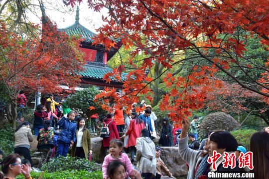 11月26日,長沙岳麓山上迎來眾多游客扎堆賞楓。岳麓山是全國四大賞楓勝地之一,每年的11月下旬至12月為最佳觀賞期,登山可看到“漫山紅遍,層林盡染”的美景。