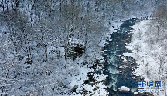 11月25日無人機(jī)拍攝的秦嶺西安段灃峪口雪景。 當(dāng)日,秦嶺雪后初霽,重重山巒在白雪覆蓋下宛若仙境。 新華社記者 劉瀟 攝