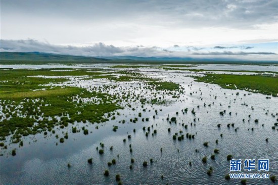 四川省阿壩藏族羌族自治州若爾蓋縣的花湖生態(tài)旅游區(qū)風(fēng)光(6月16日攝,無人機(jī)照片)。 新華社記者 劉坤 攝