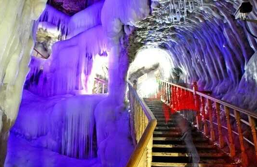 即使酷熱難當(dāng)?shù)氖⑾臅r節(jié)進(jìn)入洞中,依然是一派冰雕玉砌的嚴(yán)冬景象,和洞外的炎炎烈日、綠樹紅花構(gòu)成了兩個截然不同的世界。