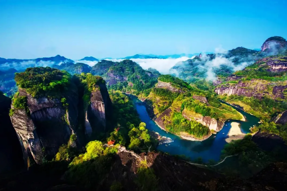 武夷山是三教名山,素有“奇秀甲東南”之美譽(yù),最高峰黃崗山海拔2158米,為東南第一峰,號(hào)稱“華東屋脊”。倘登高俯視,云興霞蔚,那九曲溪流、三十六峰、七十二洞、九十九巖的山水奇境,令人目不暇接,嘖嘖稱奇。五臺(tái)山是世界佛教名山,享有“清涼圣境”之美譽(yù),最高峰葉斗峰海拔3061米,為華北第一峰,號(hào)稱“華北屋脊”。若置身臺(tái)巔,東臺(tái)能看云海日出,西臺(tái)能賞清風(fēng)明月,南臺(tái)能觀爛漫山花,北臺(tái)能望無垢瑞雪,中臺(tái)可攬星辰萬(wàn)象,一時(shí)恍若仙境,不由得馳思遐想。