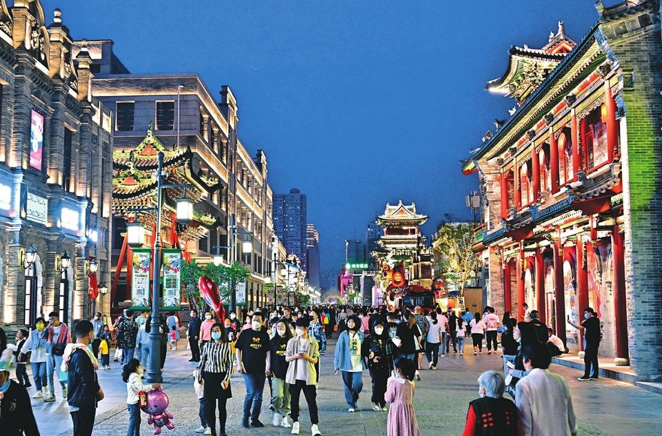 5月15日夜,華燈初上,人們愜意地在太原鐘樓街徜徉。每逢夜幕降臨,鐘樓街上人來人往,青磚綴彩,古風悠然,飛檐翹角處霓虹耀閃,古老與時尚在這里交融,歷史與現代在此地“重逢”,五光十色的鐘樓燈光秀,令人目不暇接、流連忘返。