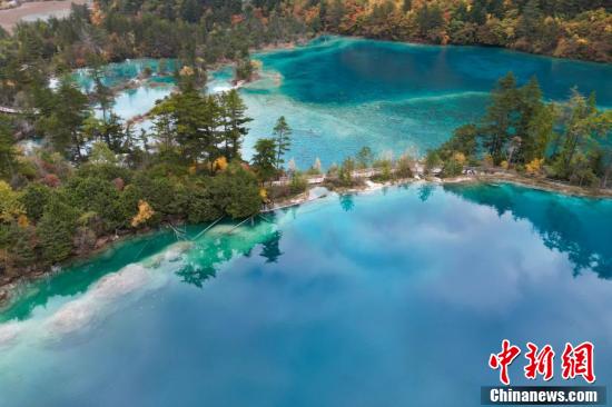 10月23日,深秋時(shí)節(jié),四川九寨溝如同油畫(huà)一般,漫山遍野的紅葉絢麗多彩,與清澈見(jiàn)底的湖水交相輝映,美輪美奐,“秋日童話(huà)”正上演。 張浪 攝