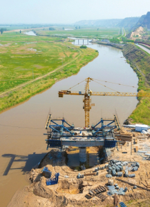 黃河萬榮段汾河治理保護(hù)工程防汛搶險(xiǎn)聯(lián)通橋工程正在加緊施工。
