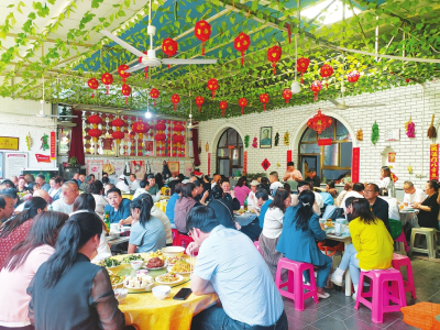 “上午游覽完太行洪谷和紅色體驗(yàn)基地,中午專程慕名到他家吃銅火鍋。你看這兒,吃火鍋連風(fēng)扇都不用開,而且食材地道,味道正宗,吃著過癮?!睅襾砟详柎逵瓮娴臅x城市民趙先生一邊大快朵頤,一邊美滋滋地說。