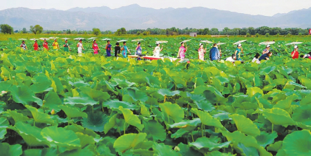 7月,正是荷花盛開的好時(shí)節(jié),在定襄縣馬城滹沱人家的“十里荷塘”賞荷花、聞荷香、攝影拍照、吟詩歌唱……既可以欣賞“接天蓮葉無窮碧,映日荷花別樣紅”的魅力景色,還可以享受“四面垂楊十里荷,問云何處最花多”的閑適生活。