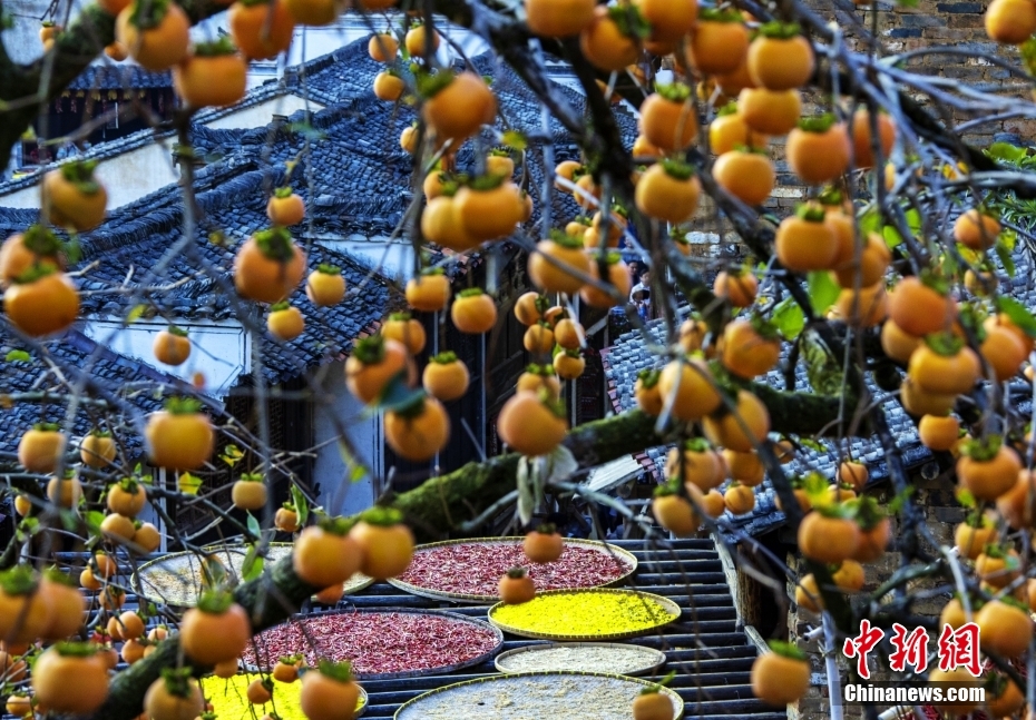 由于婺源的大多村莊是依山而建,平地較少,為將晾曬的食材安排的合理妥當(dāng),家家戶戶都展現(xiàn)了自家“空間管理”的高超技巧。圖為江西上饒婺源篁嶺古村,篁嶺獨具古韻的閣樓人家,處處可見絢爛的曬秋。稻谷、玉米、南瓜、豌豆、蘿卜曬在竹匾上,用橫木托著。