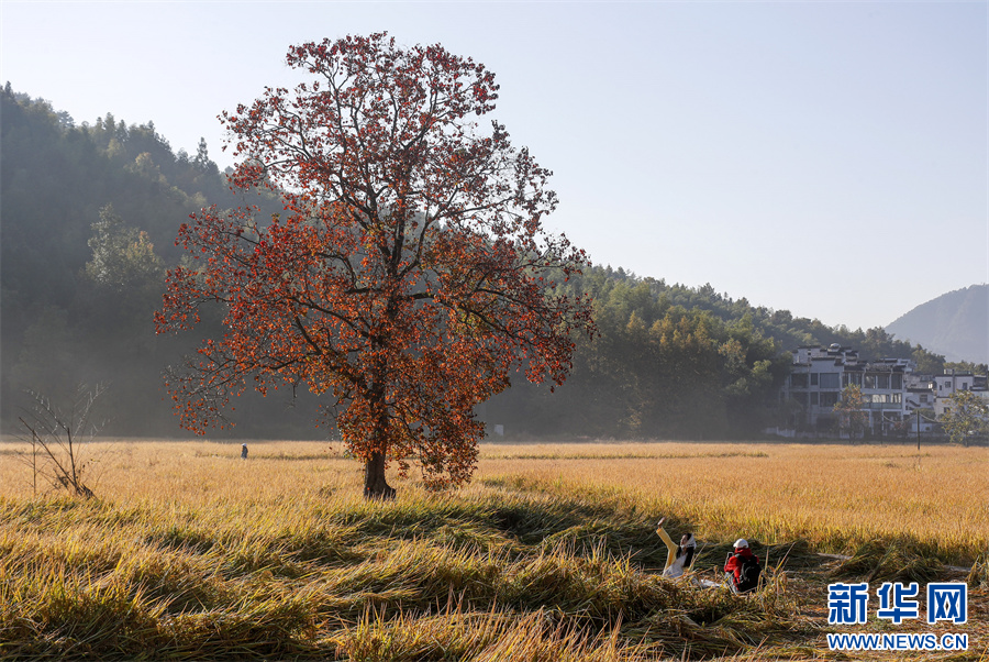 11月1日,在安徽省黃山市黟縣宏村鎮(zhèn)盧村拍攝的秋日晨景。