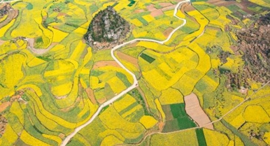 近日,貴州省六盤水市六枝特區(qū)木崗鎮(zhèn)的16000余畝油菜花競相綻放。燦爛的油菜花同丘陵、田地、道路構(gòu)成了一幅美麗的春日畫卷。