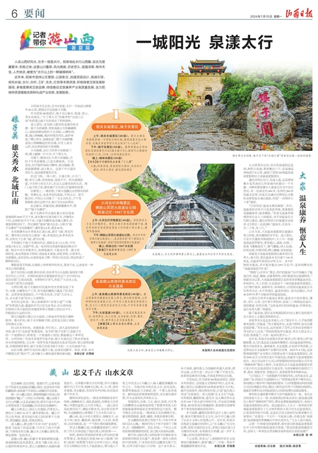 便利的交通將繁華都市與世外桃源連為一體。來自北京的游客王女士一家,坐高鐵到達陽泉北站后,就是通過微信小程序“驛路相伴”預(yù)約,乘坐免費新能源接駁車,來到大汖溫泉度假景區(qū)游玩。泡過溫泉后,王女士一家將前往距離溫泉度假景區(qū)十幾分鐘車程的大汖古村生態(tài)旅游景區(qū),以及國家傳統(tǒng)古村落、盂縣抗日民主政府舊址梁家寨鄉(xiāng)石家塔村,“還要走一下太行一號旅游公路,沿著這條‘高顏值’旅游廊道欣賞巍巍太行的壯美風(fēng)光?!蓖跖扛吲d地說。