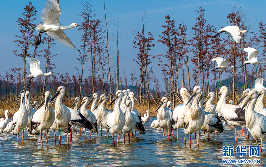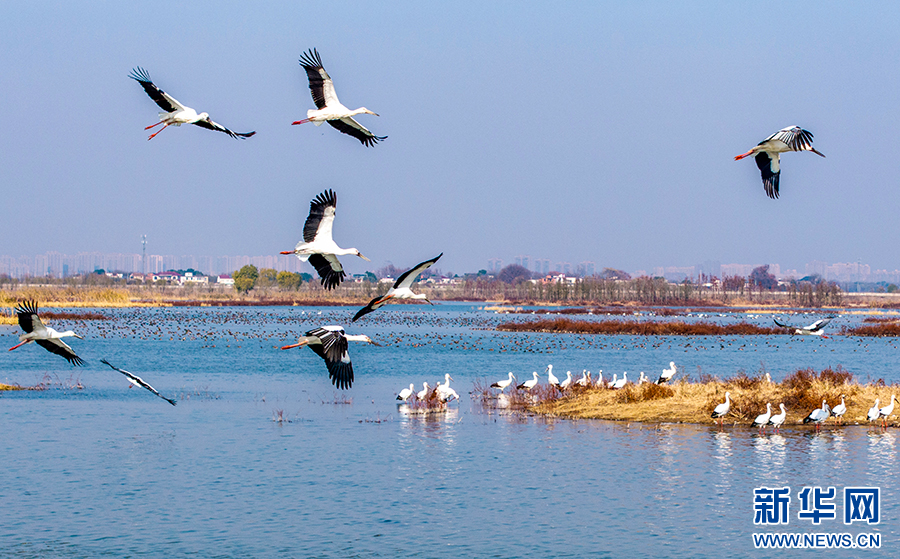 近年來(lái),廬江縣加大黃陂湖濕地保護(hù)力度,4萬(wàn)多畝的濕地環(huán)境得到較大改善。每年冬季,東方白鸛、白鶴等大量珍稀候鳥(niǎo)都按時(shí)來(lái)此過(guò)冬,萬(wàn)鳥(niǎo)齊飛的壯觀場(chǎng)面已經(jīng)成為廬江縣黃陂湖濕地最靚麗的風(fēng)景。新華網(wǎng)發(fā)(左學(xué)長(zhǎng) 攝)