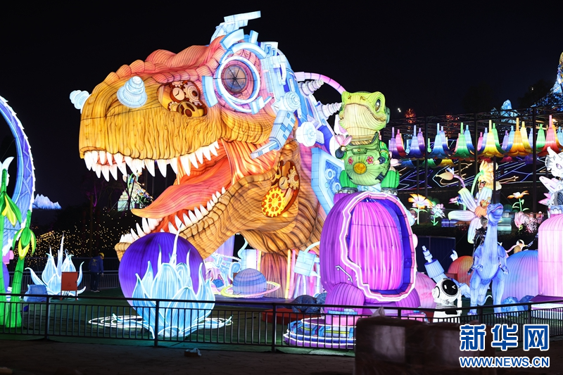 圖為1月13日拍攝的《智慧恐龍》燈組。新華網發(fā)(曹鵬 攝)