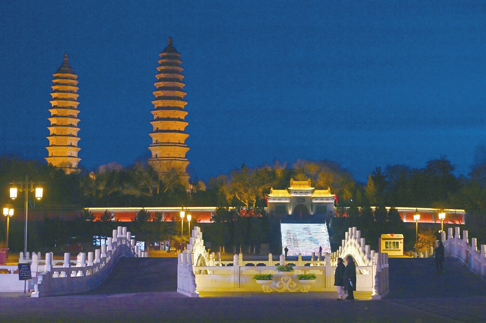 2月8日,夜幕下的太原雙塔公園燈光璀璨,美不勝收。古建筑與現(xiàn)代科技融合,盡顯北方園林的獨(dú)特韻味,令游客流連忘返。