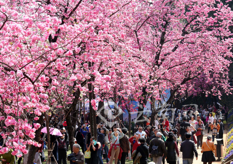 3月13日,昆明圓通動物園人潮涌動,數(shù)千株櫻花和海棠進入盛花期,吸引大批游客前來賞花觀景。