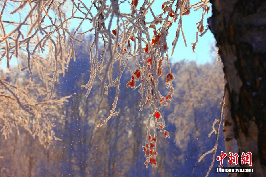 連日來(lái),新疆北部持續(xù)低溫,哈巴河縣受寒冷天氣的影響,出現(xiàn)了大面積霜掛美景。一棵棵白樺樹(shù)被妝點(diǎn)成銀白色,晶瑩剔透,潔白無(wú)瑕,置身其中,如同進(jìn)入夢(mèng)幻世界一般。圖為清晨的哈巴河縣銀裝素裹,云霧繚繞。 劉是何 攝