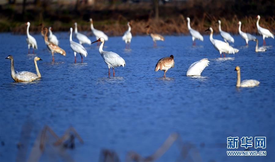 受新一輪北方冷空氣南下影響,江西鄱陽湖越冬候鳥數(shù)量激增,一年中最佳的觀鳥時(shí)節(jié)到來。江西鄱陽湖國家級(jí)自然保護(hù)區(qū)管理局近日監(jiān)測(cè)顯示,飛抵保護(hù)區(qū)的候鳥總數(shù)達(dá)到16萬只,主要包括大雁、小天鵝、白鶴、東方白鸛等。