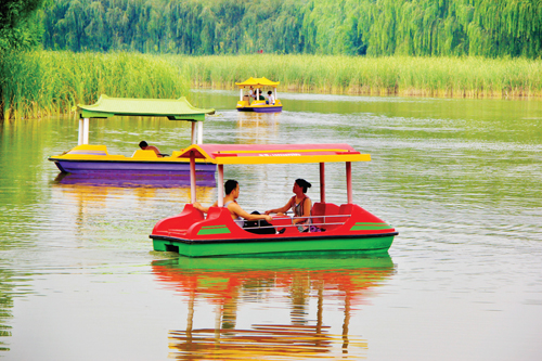 近日,原平市市民正在公園湖里劃船,有說有笑,暢談生態(tài)環(huán)境給大家?guī)淼母l怼T街匾暰G色發(fā)展,從“心”重視開始,把綠色理念貫穿在環(huán)境保護(hù)、生產(chǎn)發(fā)展中,從綠色設(shè)計、綠色生產(chǎn)、綠色運行、綠色回收、綠色再生產(chǎn)到應(yīng)用綠色能源、使用綠色包裝、實施綠色營銷、開展綠色貿(mào)易等,不斷豐富著綠色發(fā)展的內(nèi)涵和外延。(吉建平 攝)