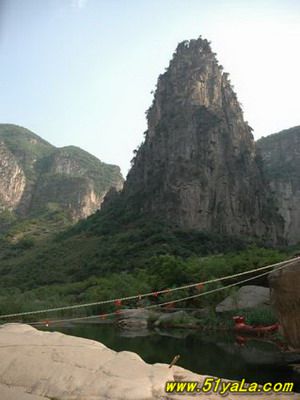 五指峰是五指峽的入口,形狀好像是伸出的五指。五指峽就是因?yàn)檫@座山峰而得名。五指峰集雄、奇、險(xiǎn)、幽、美于一體,不僅有刀削斧劈的懸崖,又有千奇百態(tài)的山石。古人曾如此描寫(xiě)五指峰:“五朵危崖五指開(kāi),亭亭玉立絕塵埃,驚濤忽漲清泉水,是否翻云覆雨來(lái)”。