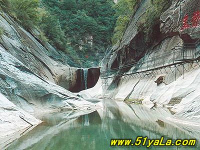 五指峽中的黑龍?zhí)端浅G宄?,終年流淌不息,在這個(gè)還有一個(gè)很有趣的說(shuō)法,據(jù)說(shuō)每到大旱的時(shí)刻人們就到這幾來(lái)求雨,但是求雨的人一定要是屬龍和蛇的,因?yàn)槭刈o(hù)著黑龍?zhí)兜氖且粭l黑龍。清澈的山澗為來(lái)到這里的人們帶來(lái)了快樂(lè)。游人可以泛舟水上,進(jìn)行皮筏漂流。