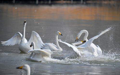 隨著天氣逐漸轉暖,在平陸黃河濕地越冬的白天鵝迎來北遷高峰,返回西伯利亞。平陸黃河濕地是國內(nèi)白天鵝越冬地之一,每年到此越冬的白天鵝數(shù)量在1萬只左右。薛俊 攝影報道