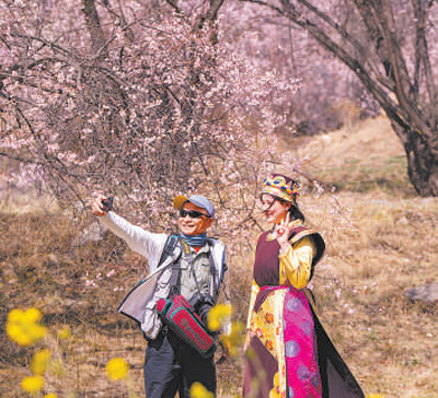 318國道,許多人眼里的“此生必駕”。沿著318國道來到林芝,一路上桃花灼灼,仿佛在奔赴一場(chǎng)與春日的約會(huì)?!斑@次自駕我們一路暢行,沿途停下來欣賞桃花,真是太美好了?!痹诎鸵藚^(qū)林芝鎮(zhèn)嘎拉村,從重慶自駕到林芝的游客張?zhí)m平說。
