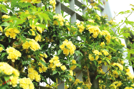黃木香是薔薇科薔薇屬植物,攀緣小灌木,高度可達(dá)6米?;ㄐ⌒?,多朵成傘形花序,花重瓣黃色。黃木香的生長速度非??欤p輕松松就可以長成一面花墻,它的枝條柔軟,像一個個藤蔓精靈,在園藝師的奇思妙想下,或成為墻壁精美的外衫,或可將一個普通的架子攀援成蜿蜒