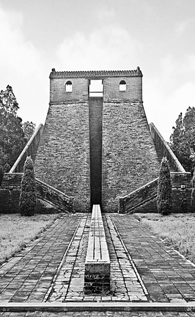 周公廟山門為明代建筑風(fēng)格,兩側(cè)的石柱上刻著一副對聯(lián):“石表寓精心氤氳南北變寒暑,星臺留古制會合陰陽交雨風(fēng)。”這是對廟內(nèi)的周公測影臺和觀星臺作用和價值的高度概括。山門對面有一座照壁,中嵌一石刻“千古中傳”,是對兩臺的形象歌頌。