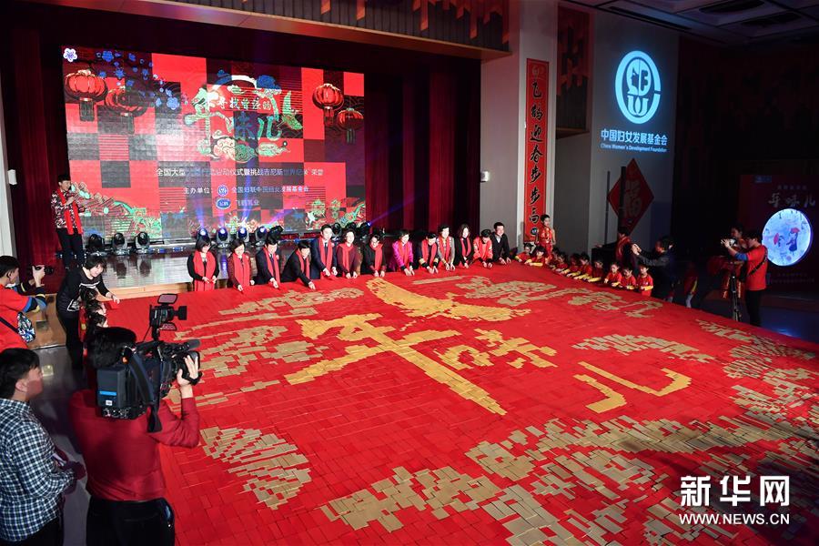 1月11日,“尋找曾經(jīng)的年味兒”全國(guó)大型公益行動(dòng)在北京中國(guó)婦女兒童博物館啟動(dòng),通過發(fā)放年味兒畫冊(cè)、舉辦年味兒趣味活動(dòng),弘揚(yáng)傳統(tǒng)文化,同時(shí)為貧困家庭、醫(yī)護(hù)工作者送去問候與關(guān)愛。活動(dòng)中,由近6萬(wàn)個(gè)紅包拼鋪而成的64平方米“最大紅包拼圖”載入吉尼斯世界紀(jì)錄。春節(jié)期間,北京、濟(jì)南、石家莊、鄭州、哈爾濱等五座城市都將開展尋找年味兒的相關(guān)活動(dòng)。新華社記者 李鑫 攝