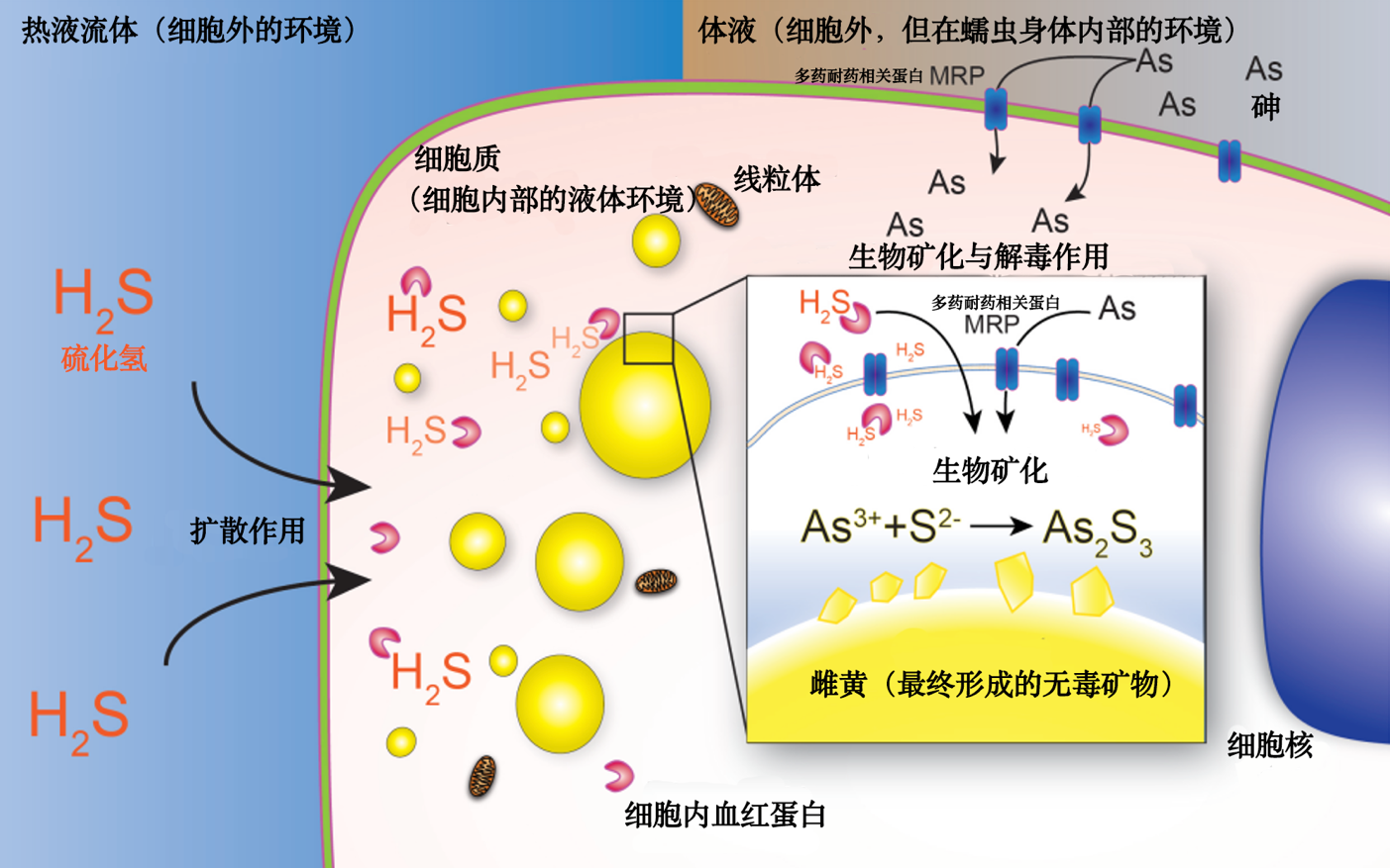 2025年8月,中國科學(xué)院海洋研究所的研究團(tuán)隊(duì)在《PLOS生物學(xué)》(PLOS Biology)上發(fā)表了一項(xiàng)驚人發(fā)現(xiàn):赫斯帕拉爾文氏蠕蟲通過一種前所未有的“以毒攻毒”機(jī)制,將兩種致命毒素——砷和硫化氫——結(jié)合成無毒的雌黃礦物,實(shí)現(xiàn)了生物界首個(gè)已知的解毒性生物礦化。
