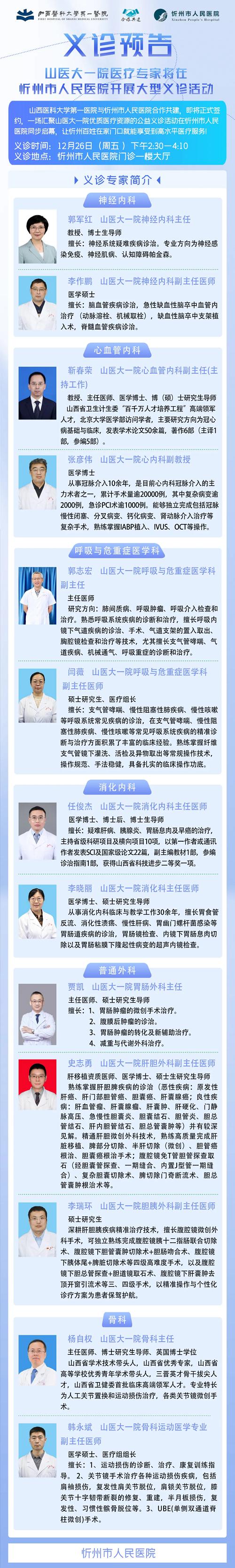 【義診預告】12月26日,山西醫(yī)科大學第一醫(yī)院醫(yī)療專家將在忻州市人民醫(yī)院開展義診活動