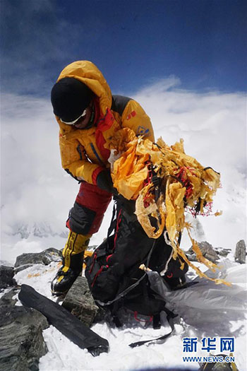 2018年5月,次仁旦達(dá)在珠穆朗瑪峰7500米的高度撿垃圾。 新華社發(fā) 次仁旦達(dá),四次登頂珠峰,卻并未因此而欣喜。本是最圣潔的地方,卻隨處可見到垃圾,讓生長(zhǎng)在珠峰腳下的他感到心痛。于是,他默默地彎下腰,頂著每秒20米的風(fēng)速,冒著零下50攝氏度的嚴(yán)寒,拾起沿途遺棄的廢棄物品。 剛開始,是他一個(gè)人在干,后來(lái)一群人跟著干。5240公斤的生活垃圾、1000多公斤的登山垃圾,以及2260公斤的排泄物……他們誓言,在海拔8844.43米的地方,做一名衛(wèi)士,守護(hù)好這片凈土。 來(lái)自河北滄州的李德,身上貼有很多看似“撞色”的標(biāo)簽:既是環(huán)衛(wèi)工人,也是首位享有國(guó)務(wù)院特殊津貼的環(huán)衛(wèi)專家;一手拿著初中文憑,另一手卻有9項(xiàng)國(guó)家專利,100余項(xiàng)技術(shù)創(chuàng)新……他發(fā)明的“小型糞便機(jī)械化作業(yè)車”,讓清潔工人只需按動(dòng)操作閥門就能自動(dòng)完成從清淘到傾倒,身上不會(huì)沾染臟污。