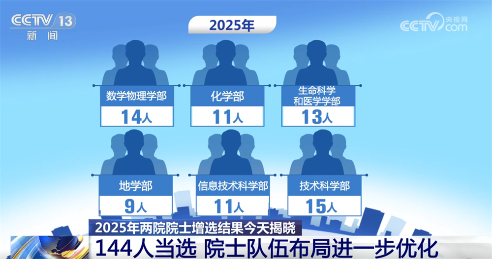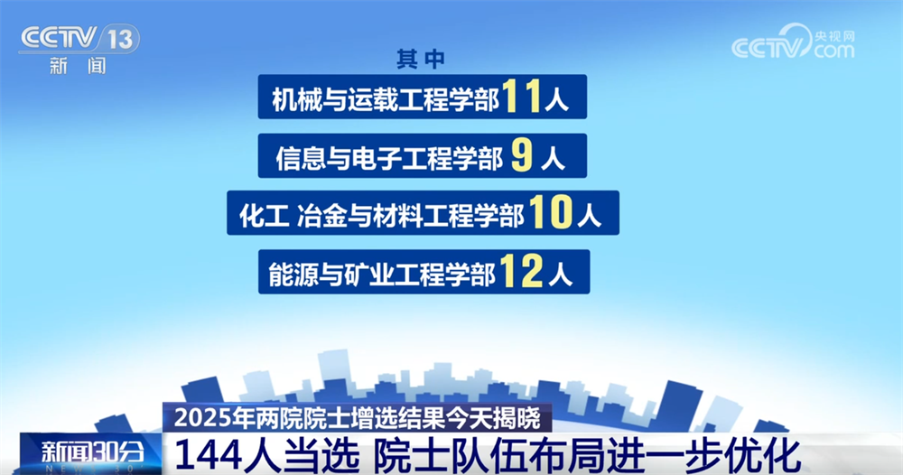 央視網消息:11月21日,2025年兩院院士增選結果正式揭曉,共有144人當選,院士隊伍的年齡結構、學科、地區(qū)和行業(yè)布局進一步優(yōu)化。