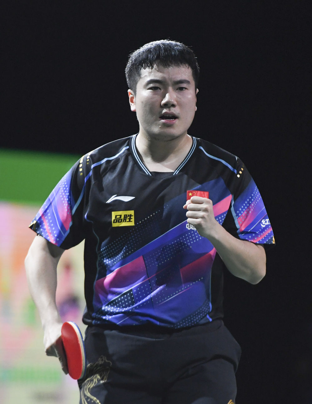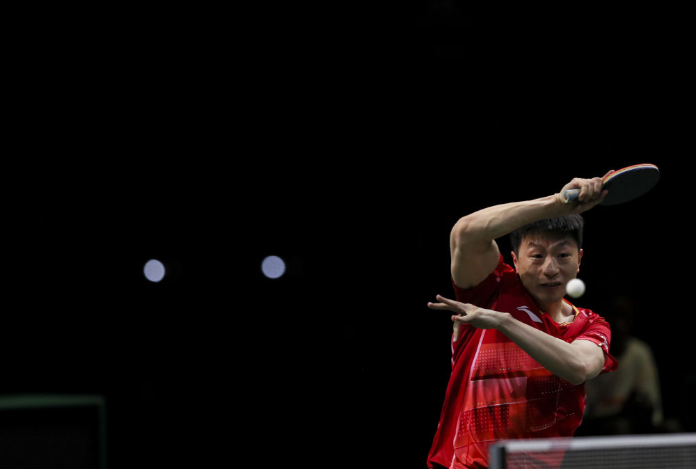 5月22日,馬龍在比賽中回球。新華社記者 張譽東 攝