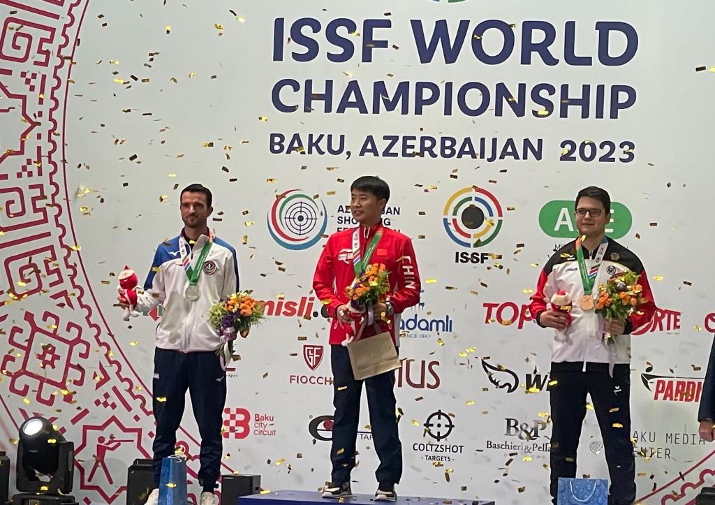 李越宏(中)在頒獎(jiǎng)儀式上 這是兩屆奧運(yùn)會(huì)銅牌得主李越宏首次在世錦賽上奪得個(gè)人冠軍,他同時(shí)也為中國(guó)隊(duì)獲得一張?jiān)擁?xiàng)目奧運(yùn)門(mén)票。加上2022年世錦賽上陸志明打下的一張門(mén)票,中國(guó)隊(duì)在該項(xiàng)目上獲得了滿額資格。 此外,在男子50米步槍臥射比賽中,小將杜林澍獲得銀牌,中國(guó)隊(duì)名列團(tuán)體第三。 獎(jiǎng)牌榜上,中國(guó)隊(duì)以10金6銀4銅遙遙領(lǐng)先,其中奧運(yùn)項(xiàng)目6金2銀3銅,已經(jīng)創(chuàng)造了在世錦賽上奧運(yùn)項(xiàng)目的歷史最好成績(jī)。 (責(zé)任編輯:蔡文斌) |