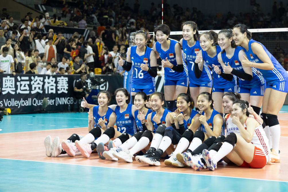 9月17日,中國隊(duì)球員在賽后合影。當(dāng)日,在浙江省寧波市舉行的巴黎奧運(yùn)會女排資格賽A組比賽中,中國隊(duì)以3:0戰(zhàn)勝墨西哥隊(duì)。新華社記者 張濤 攝