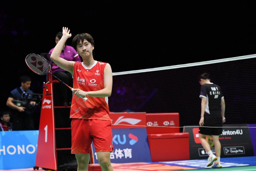 女單冠軍的爭奪在中國隊選手陳雨菲和韓悅之間展開。兩人前兩局戰(zhàn)至1:1后,韓悅因傷退賽。