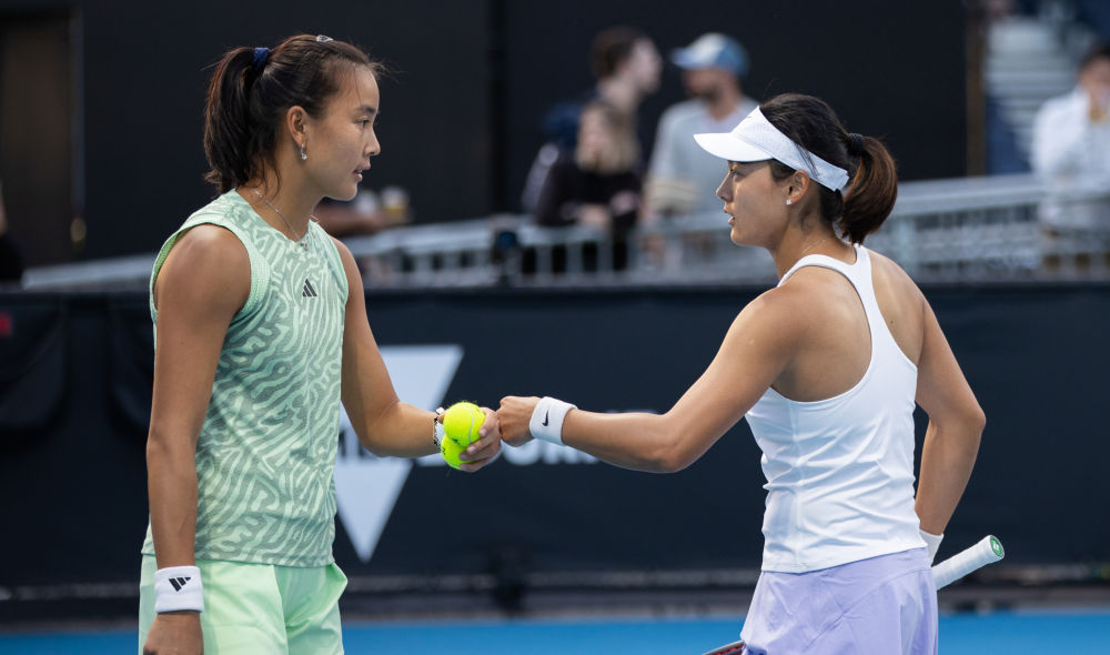 1月17日,王雅繁(右)/袁悅在比賽中交流。新華社發(fā)(胡涇辰攝) 在雙打賽場上,持外卡出戰(zhàn)的中國“金花”王雅繁/袁悅以兩個6:3力克跨國組合布龍澤蒂/沃森,王曦雨聯(lián)手捷克選手諾斯科娃以3:6、6:3和6:4逆轉(zhuǎn)戰(zhàn)勝澳大利亞外卡組合,晉級女雙第二輪。 (責(zé)任編輯:蔡文斌) |