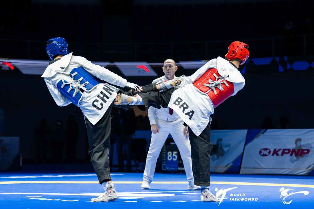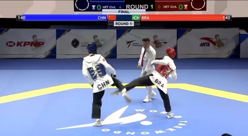 決賽首局比賽,中國隊肖樹楠以一個腹部踢擊得分加對手出界拉開分差,占據(jù)優(yōu)勢后中國隊持續(xù)迎擊,以能量值130:70獲勝。第二局中國隊開場防守松懈,被扣掉40分(能量值),盡管后程中國隊加強攻勢,還是以能量值65:75不敵對手。在決勝局中,巴西隊兩記直拳打開局面,能量值占優(yōu),此后雖然巴西隊兩次被判消極進攻,但中國隊未能把握住機會,最終以能量值110:115輸?shù)舻谌?,大比?:2告負。