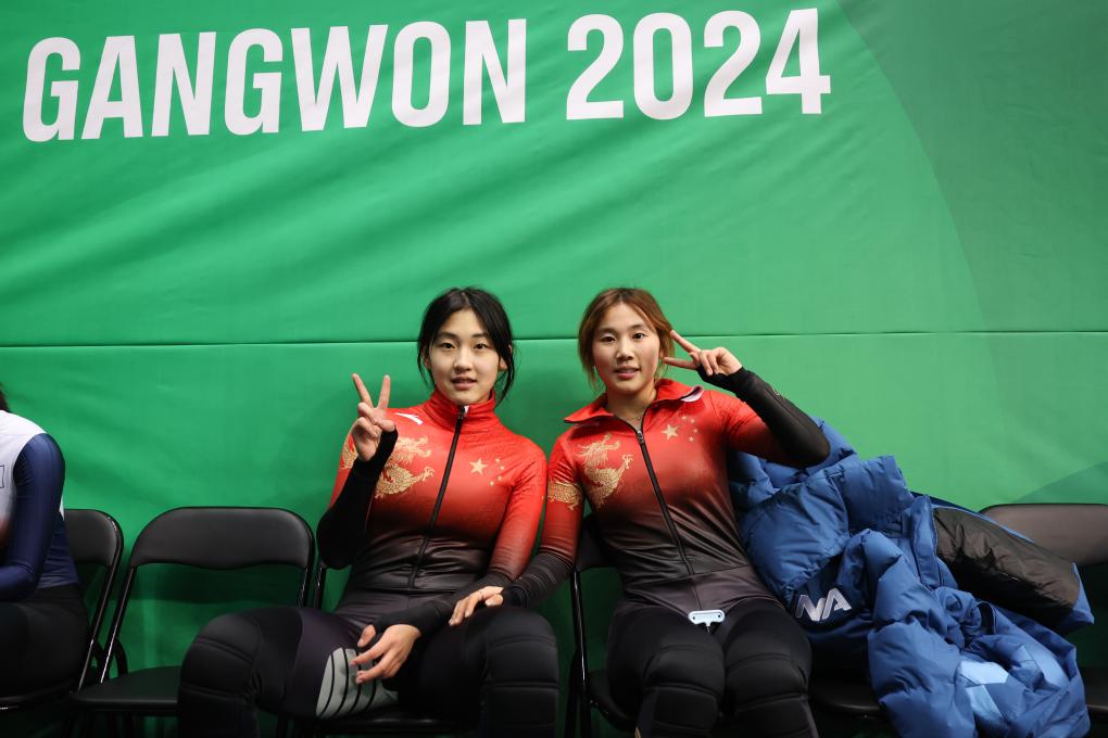 1月20日,中國選手楊婧茹(右)與李金恣在比賽后慶祝。當(dāng)日,在韓國江陵進(jìn)行的2024年江原道冬青奧會短道速滑女子1500米決賽中,中國運動員楊婧茹和李金恣分獲金、銀牌。新華社記者 許雅楠 攝 11月在湖南 第一屆全國青少年三大球運動會順利舉行 三大球后備人才基礎(chǔ)不斷夯實