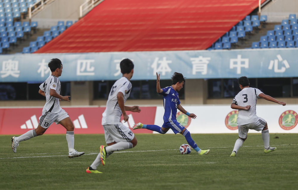 2024年8月30日,大連市第八中學(xué)隊球員張禹(右二)打入第一粒進球。當(dāng)日,2023-2024全國青少年校園足球聯(lián)賽高中男子組決賽在北京奧體中心體育場舉行,大連市第八中學(xué)隊2比0戰(zhàn)勝南昌市第二中學(xué)隊,奪得冠軍。新華社記者 胡星宇 攝